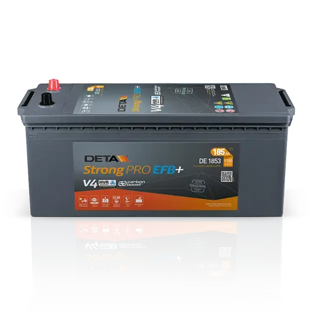 La gama de baterías StrongPRO de Deta es ahora más resistente que nunca. Una nueva fórmula basada en el potenciador de carbono, en la masa activa de la placa negativa, mejora la recargabilidad y la aceptación de carga de la batería StrongPRO EFB+. Además, la tecnología HVR® (resistente a altas vibraciones) permite a StrongPRO EFB+ superar las pruebas de vibración extrema según la nueva norma europea V4 (EN 50342-1:2015). Una batería más robusta y duradera se traduce en una reducción del coste total del servicio para los propietarios de flotas, y los conductores de camiones, lo que permite realizar menos sustituciones a lo largo de la vida útil del vehículo y minimizar el riesgo de fallos inesperados y prematuros de la batería.